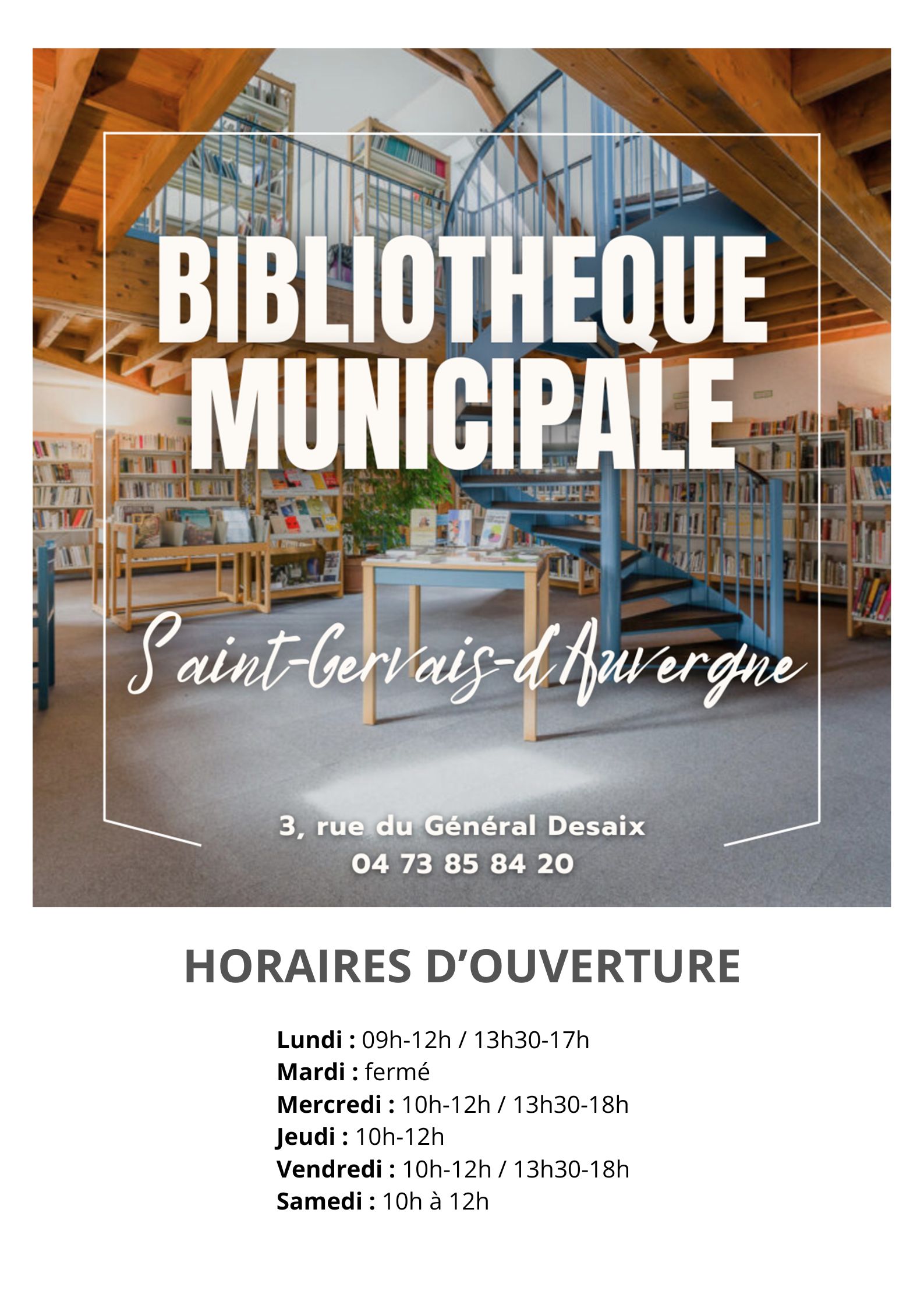 Retour des horaires habituels à la bibliothèque municipale :